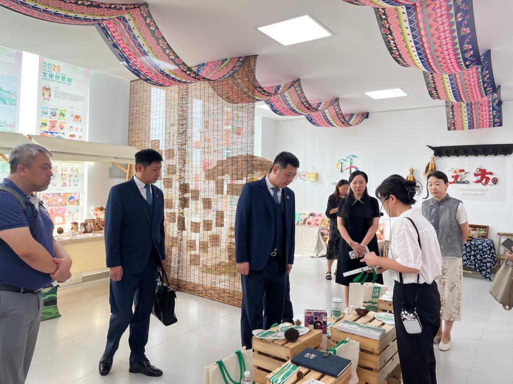 代表团一行首先实地参访了艺术设计学院2025年文化创意周展厅等教学与实践场所,通过系列涵盖文具、服饰、饰品、数字IP的师生文创作品,深入了解了我校在艺术设计人才培养、技能培训、社会服务等方面的教学理念及成果。