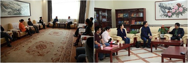 在中央电视台新影集团,考察组一行受到了新影集团副总裁赵捷、集团总裁助理时间、新影研究院副院长李洪魁的热情接待,在新影厂观片室观看了由新闻电影制片厂摄制的早期纪录片以后,双方进行了座谈交流。座谈中,赵捷、李洪魁分别介绍了中央新影历史发展概况、新影艺术研究院的基本情况。目前,新影集团借助优质央视投放平台,丰富的纪录片视频资源,以及具有丰富行业经验的影视专业人才,组建了新影电视艺术研究院并以“新影大讲堂”为平台,开展影视专业技能培训、影视创作分享等培训工作。在交流中,考察组表达了希望基于双方产学合作的基础,借助于目前新影集团强大的纪录片创作队伍和高水准技术为支撑,以纪录片为主题植入到影视学院专业教学之中。考察组一行还参观了新影集团旗下的北京科学教育电影制片厂,以及该厂目前正打造以戏剧为元素的北京重点文化产业项目——“剧空间”。