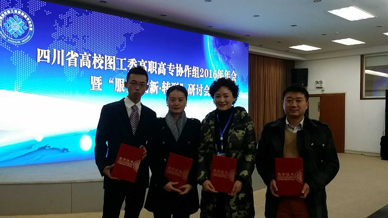 12月8日,由四川省图工委高职高专协作组举办的全省高职高专图书馆案例大赛在全省高职高专2016年年会暨“服务.创新.转型”研讨会上揭晓,我校图书馆案例“行知大讲堂”、“青春梦想—图书馆形象宣传片”分获大赛二、三等奖,同时还有4件案例获得优秀奖。