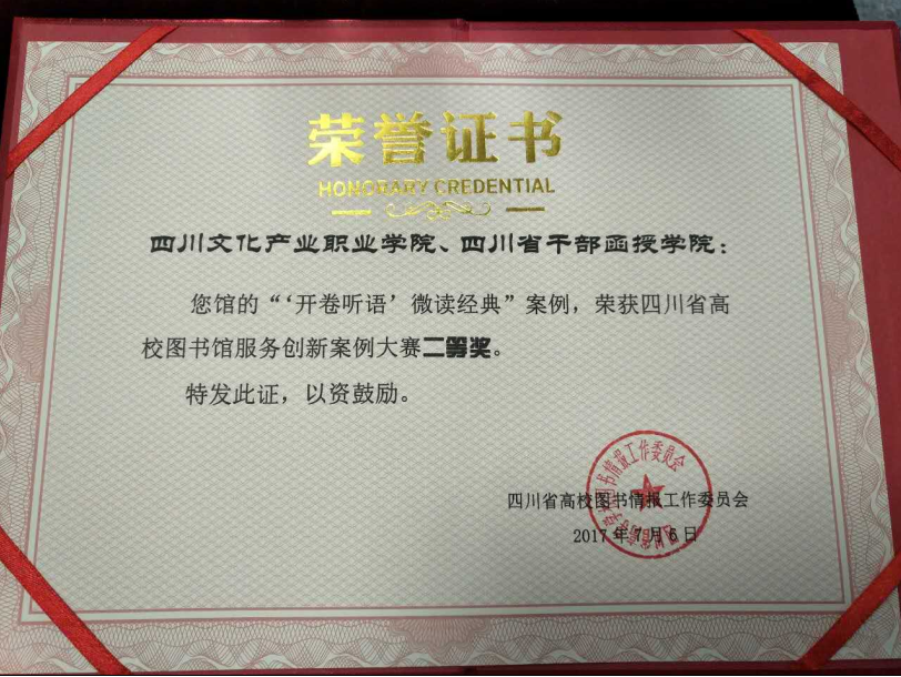 7月6日,“四川省高校图书馆服务创新‘维普杯’案例大赛”在电子科技大学清水河校区举行,我校图书馆选送案例“‘开卷听语’,微读经典”在57件作品中脱颖而出,进入决赛并荣获二等奖。