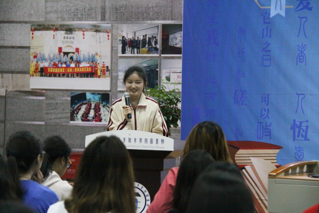 “心灵本没有密码,但密码无处不在。”周烨塬通过逐步解剖的方式从作者简介、作者作品、书本内容三个大板块深刻剖析了毕淑敏的《心灵密码》一书。“生命中最重要的是哪几样东西?”、“如何识得生命中的贵人?”、“人为何会常常遗失最重要的支点?”她以书中内容为切入点,回顾内容的同时以提问互动的方式调动现场气氛,17级文化经营与管理专业学生邱成毅以自己与抑郁症朋友的故事谈了自己的看法:“人与人之间的关爱在于对他人的倾听,有时候你的倾听就是对他人的救赎。”