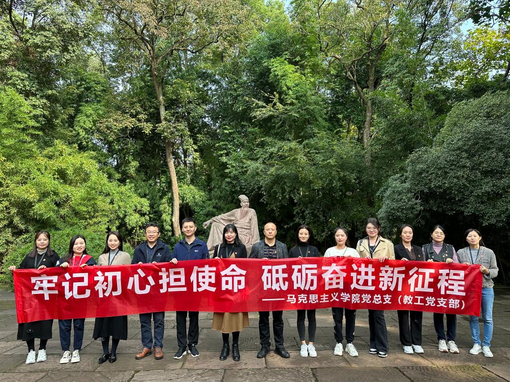 为学习贯彻党的二十大精神,增强党员教师传承中华优秀传统文化的自觉意识,坚定文化自信,涵养新时代共产党人的良好家风,11月5日马克思主义学院党总支(教工党支部)组织全体党员教师前往三苏祠开展了“牢记初心担使命,砥砺奋进新征程”的主题党日活动。