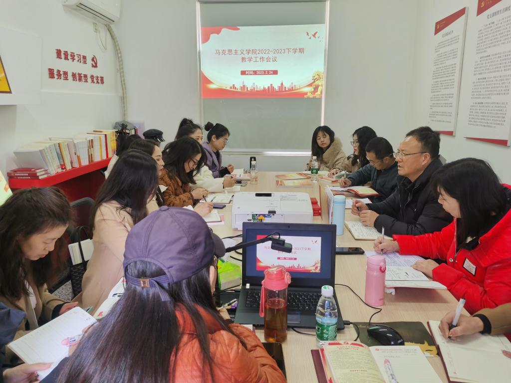 2月24日,马克思主义学院在4号楼302召开教学工作会议暨全体党员大会。马克思主义学院全体教师参加会议。