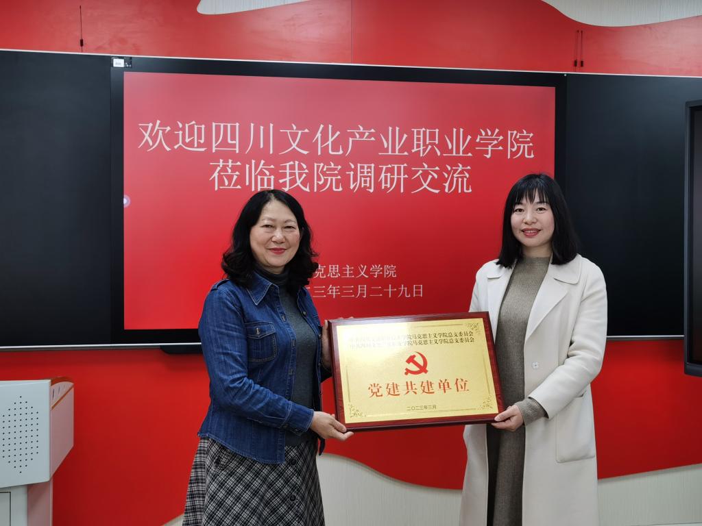 座谈会上,王蓉霞就马克思主义学院建设、教研室工作、课程建设,尤其是形势与政策课集体备课的经验做法和“五联系工程”的体制机制进行了详细介绍。徐文重点介绍了近年来党建成果和特色做法。张宗胜对四川交通职业技术学院马克思主义学院的热情接待和毫无保留的经验分享表示感谢。他表示,交职院马院在党建工作、“双高”建设、质量诊改以及对标竞进等方面积累了先进的经验和令人瞩目的成绩,值得我们认真借鉴和学习。双方就思政课课堂教学、实践教学、四史教育、集体备课等内容进行了深入的探讨交流,表示今后将进一步加强党建与业务方面的合作。随后,双方举行了“党建结对共建”授牌仪式。