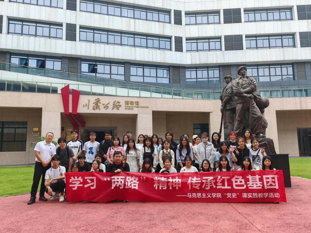 为贯彻落实“立德树人”根本任务,培育和践行社会主义核心价值观,厚植爱国情怀,在“大思政课”视野中孕育新时代青年担当。 6月8日上午,马克思主义学院“党史”公选课班全体学生来到川藏公路博物馆开展“学习‘两路’精神 传承红色基因”实践教学活动。