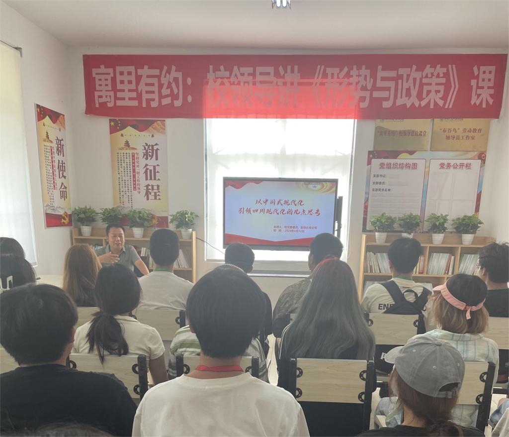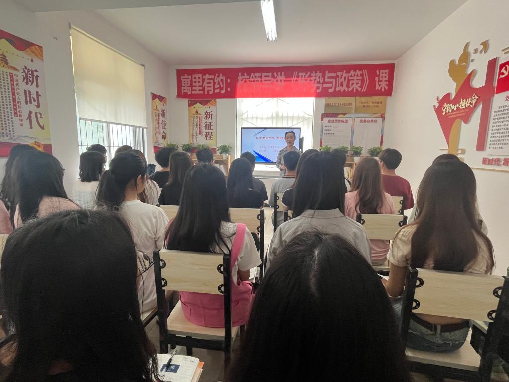 为深入贯彻落实习近平总书记对学校思政课建设作出的重要指示精神,切实加强大学生思想政治教育工作,充分发挥领导干部的示范引领作用,近日,我校领导班子成员或走进学生公寓、或走进课堂教室,围绕当前的最新时政热点,为同学们讲授《形势与政策》课,成为思政课堂上一道亮丽的风景线。
