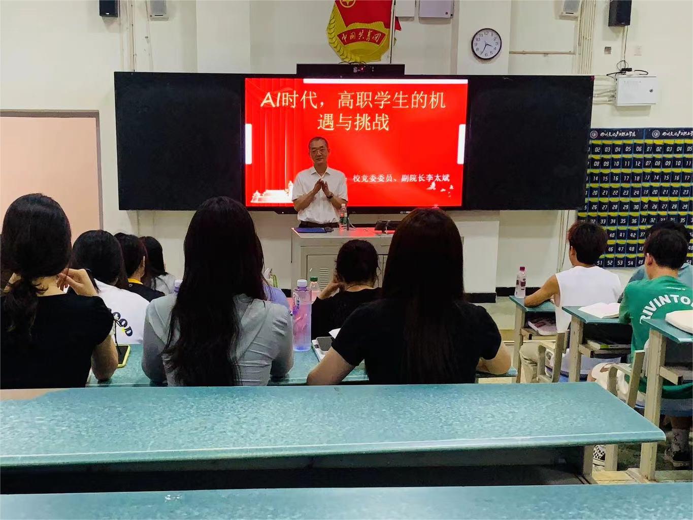 6月19日,校党委委员、副院长李太斌以《AI时代,高职学生的机遇与挑战》为题,结合我校的发展历程,深刻分析了AI时代高职院校学生所面临的机遇与挑战。他引导同学们要抓住机遇、主动作为、拥抱时代,争做新时代的奋斗者。课后,同学们纷纷表示,这次授课让人深受启发、深受教育,更令人倍受鼓舞、倍加振奋,大家一定会勤奋学习、努力奋斗,在建设中国式现代化的新征程上书写青年华彩篇章。