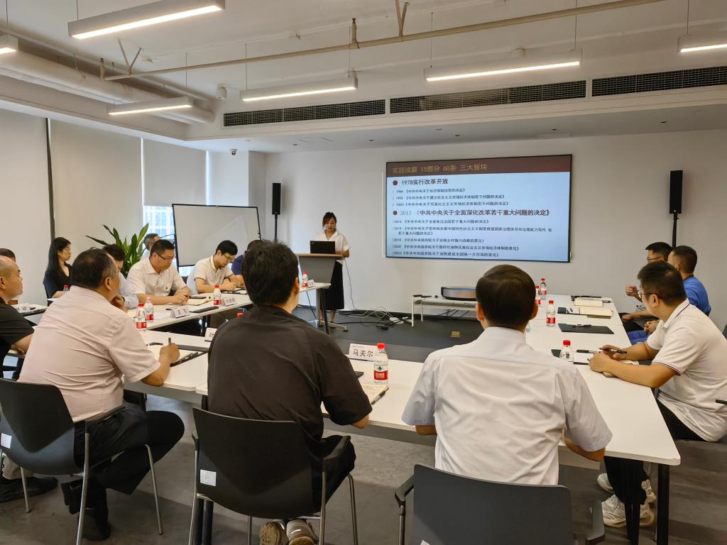 宣讲会上,洪雯婷从深刻认识党的二十届三中全会的重大意义、深入学习领会习近平总书记在全会上的重要讲话精神、全面理解把握《决定》提出的进一步全面深化改革的重大举措、全力以赴抓好全会精神贯彻落实等方面,对党的二十届三中全会精神进行了全面宣讲,尤其以“构建支持全面创新体制机制”为主题内容,从回望过去,中国经济快速增长的奇迹背后的原因;立足当下,把握三中全会精神,发展新质生产力;面向未来,针对三中全会所提出的关于创新的一些部署,企业应该如何应对等三个方面进行了深入阐释。