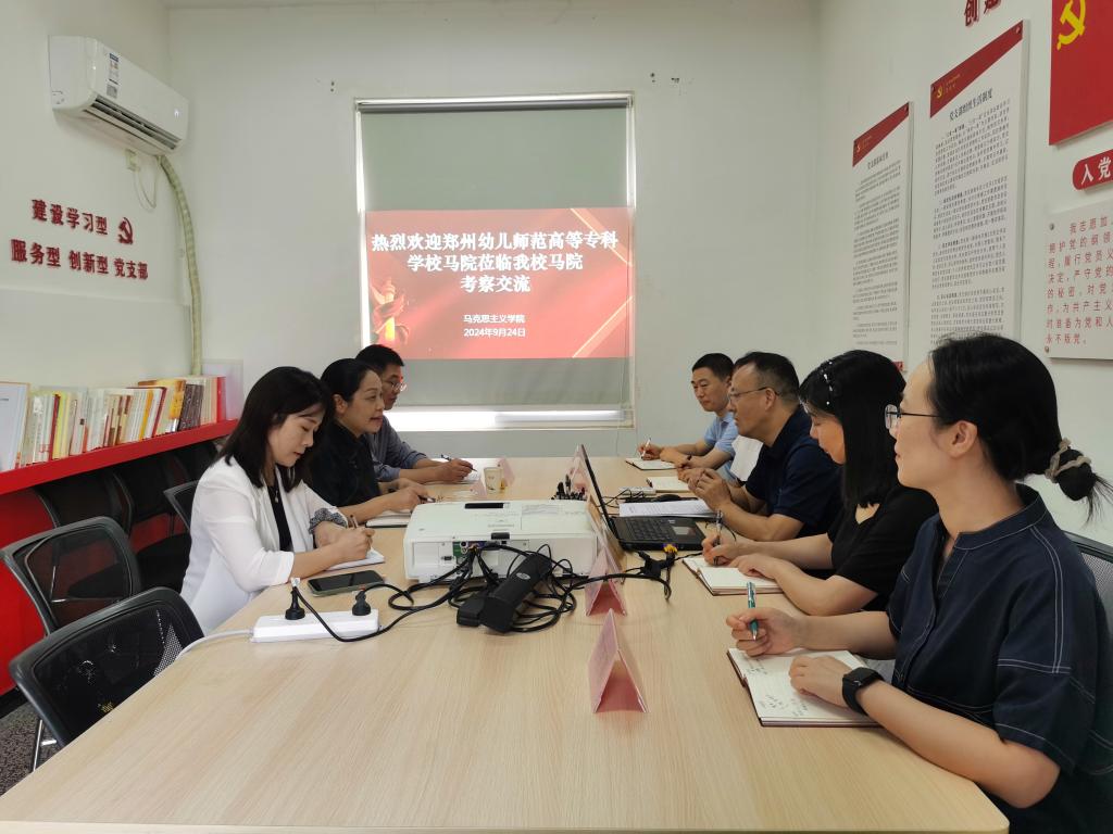近日,郑州幼儿师范高等专科学校马克思主义学院党总支书记、院长梁彩霞、副院长张波及马院教师刘晓丹一行来我校马院考察交流。我校马院院长张宗胜、党总支副书记马吉宏及教研室主任等参加了交流座谈会。