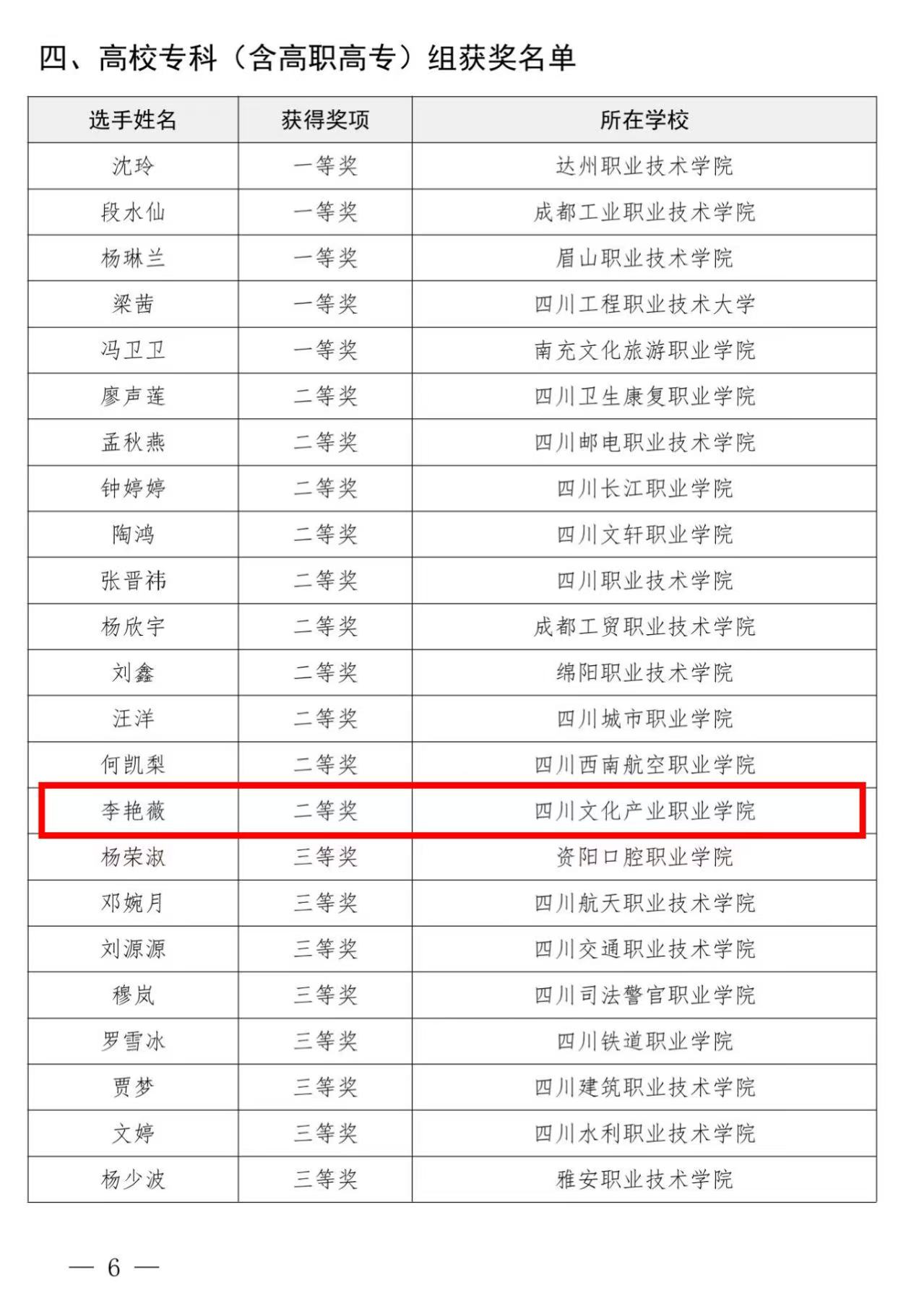 2025年7月,由四川省教育厅主办的大中小学国家安全教育教师教学竞赛在四川师范大学举行,来自全省各地市州的优秀教师同台竞技。经过激烈角逐,我院李艳薇教师凭借扎实的专业素养、创新的教学设计以及出色的现场表现,在比赛中脱颖而出,荣获高校专科(含高职高专)组二等奖。