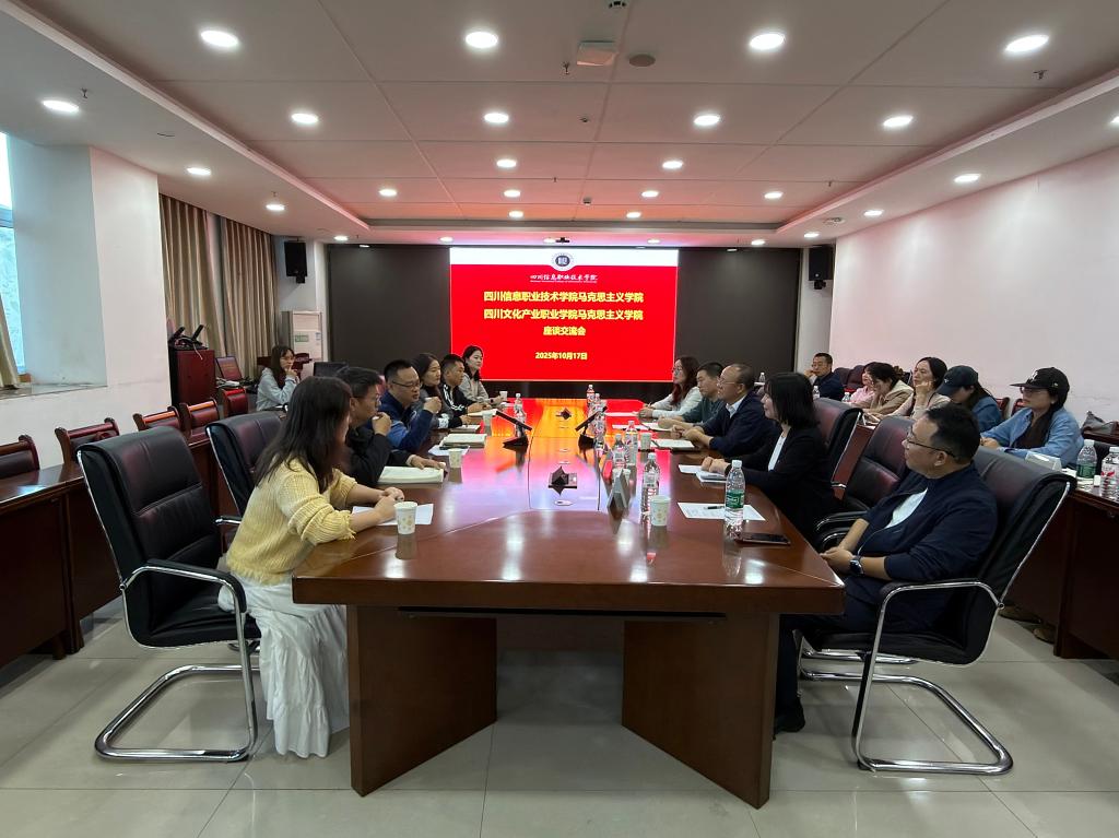 为进一步推动我校马克思主义学院内涵式发展,提升我校马吉宏名师工作室建设与思政课教师教育教学水平,10月17日,马克思主义学院院长张宗胜率教师代表一行16人,赴四川信息职业技术学院马克思主义学院(后简称“川信职院马院”)开展交流学习。