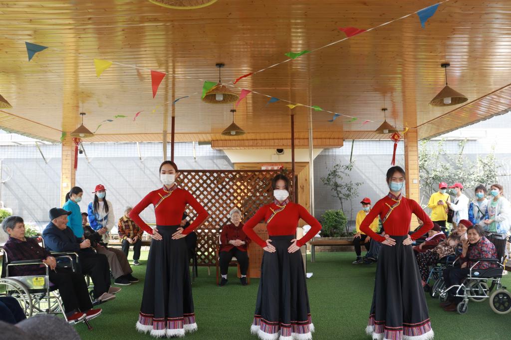4月24日10:00,志愿者们到达养老院后,通过表演文艺节目、打扫院内卫生、听老党员讲老故事等多个形式开展了志愿服务活动。歌曲《一生有你》、《老男孩》,舞蹈《藏族组合》等精彩的节目赢得了老人们的喜爱和掌声。表演结束后,贴心的志愿者们为老人们送去了水果和礼品,随后为老人们进行房间整理和卫生打扫。最后,志愿者们给老人们喂水果、米饭,与老人们聊天、拉家常,听老党员讲述过去的故事,使老人们感受到温暖的同时,也让志愿者们受到了启发和教育。