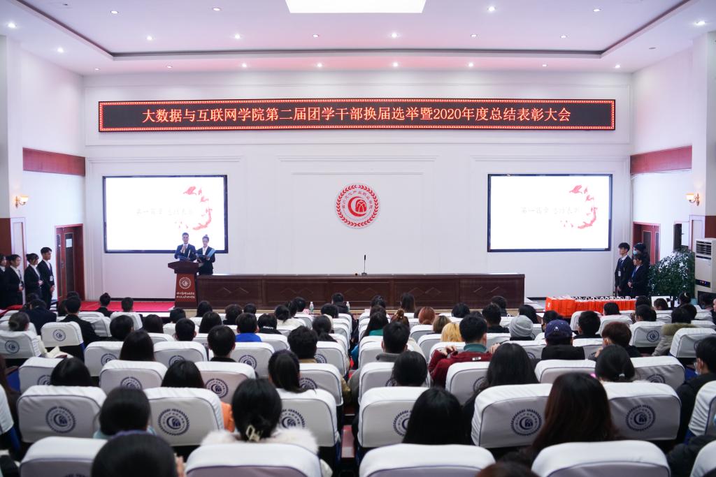 1月6日,大数据与互联网学院第二届团学干部换届选举暨2020年度总结表彰大会在二教105举行。大数据与互联网学院党总支副书记贾仕延、分团委指导教师刘茂林、学生科教师汪玲、陈虹森,各学院、班级代表以及全体学生干部190余人参加了本次会议。