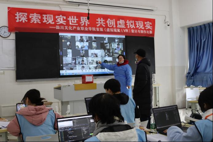 受突发疫情影响,此次在三教502、505举办的虚拟现实(VR)设计与制作竞赛采用“线上与线下结合比赛+线下评审”方式进行。备赛以来,我校指导教师谭蓉、吴香林老师带领学生进行了高强度训练,学校领导高度重视,老师们积极协调训练资源,认真组织学生备赛,克服了疫情带来的不利因素对备赛的影响。在本次竞赛中,参赛学生沉着冷静,攻坚克难,最终取得优异成绩,这既展现了选手过硬的技术技能水平和优良的综合素质,也展现了我校在职业教育方面的育人实效,既对备赛师生长达一年艰苦训练的肯定,也为我校探索培养高技能虚拟现实人才培养方案提供了方向指导。今后我校将继续发挥大赛对教学的引领示范作用,培养更多高素质技术技能人才。