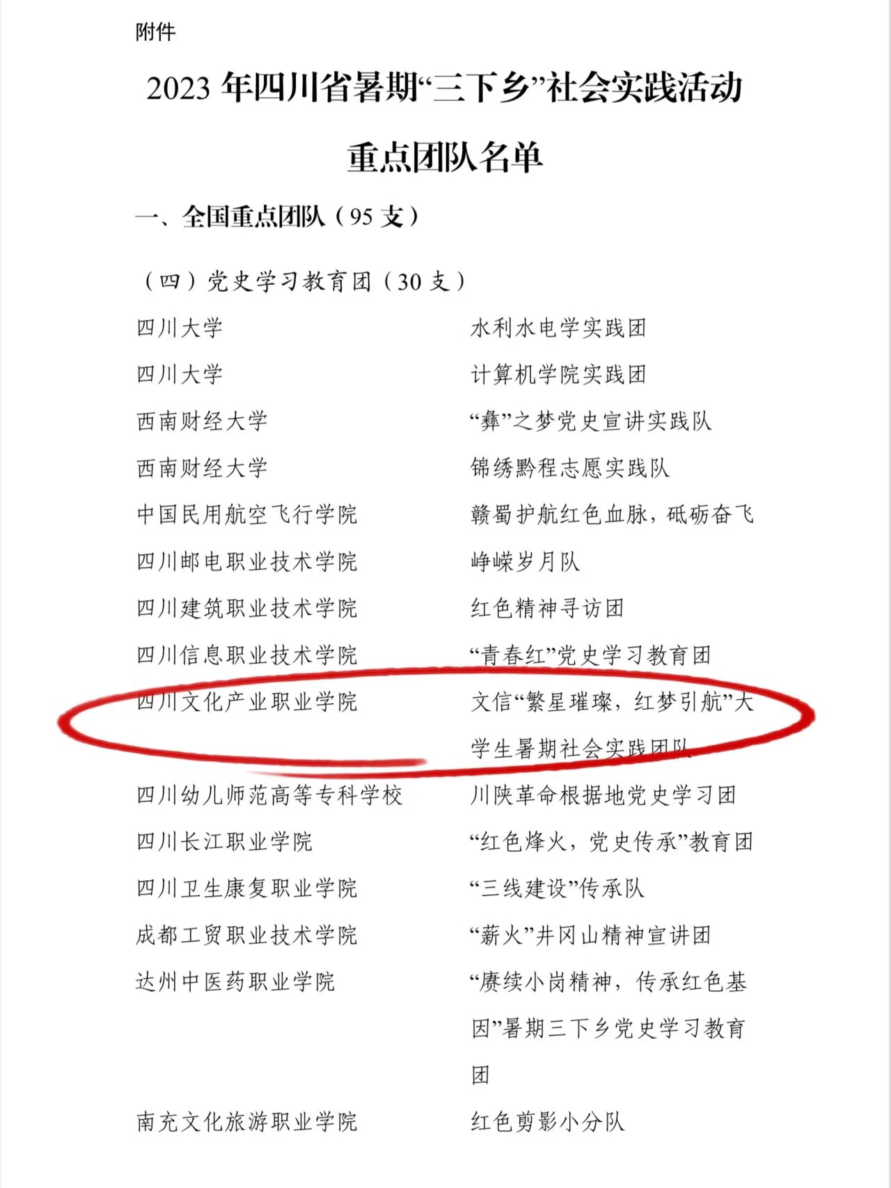 此外,“繁星璀璨,红梦引航”社会实践团队荣获了2023年四川省暑期“三下乡”社会实践活动省级重点团队!