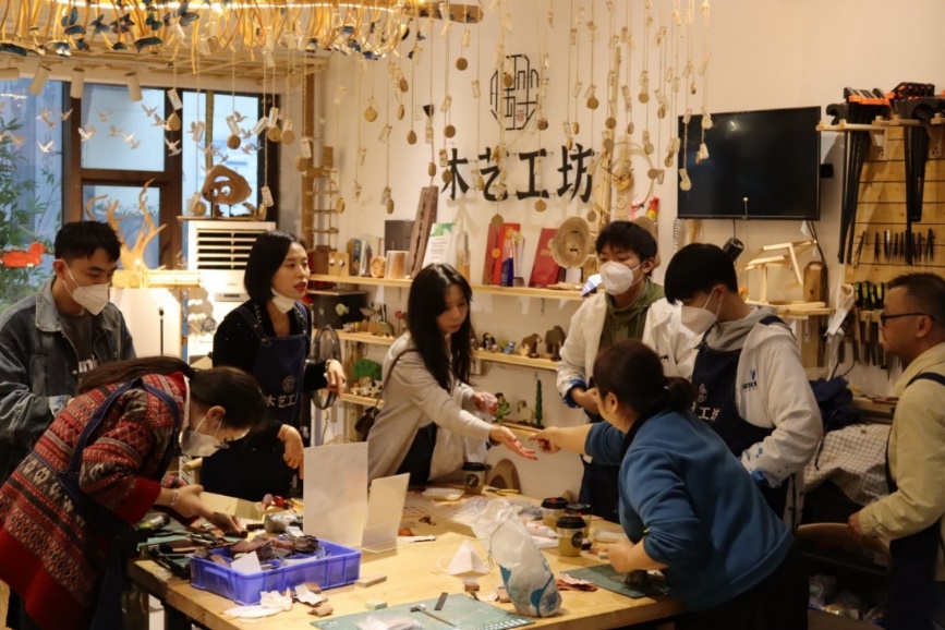 喜树路社区创新创业导师带领学生参观了基地各个项目,介绍了每个项目的特色以及运营模式。首先,同学们分组体验了基地创新项目,包括意陶艺DIY、拇指琴手作体验、草木拓印花草小夜灯、超酷朋克机器人手作等。然后,同学们通过体验项目,对喜树路社区的创业项目特点以及运作模式展开了讨论,为进一步探索大学生创新创业新路径。最后,糜娜强调目前国家在大力发展创新创业,大学生创新创业教育是第一阵地,希望同学们能开阔思维,顽强拼搏,努力提升自身素质,为以后就业创业打下一个坚实的基础。