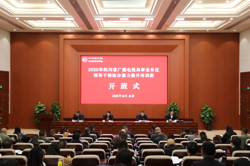 10月27-29日,2025年四川省广播电视局事业单位领导干部综合能力提升培训班在我校成功举办。校党委副书记、纪委书记李清勇,省广电局党组成员、副局长、机关党委书记杨静出席开班仪式并讲话,省广电局人事处处长云鹏主持,局属事业单位近100名主要负责同志参训。