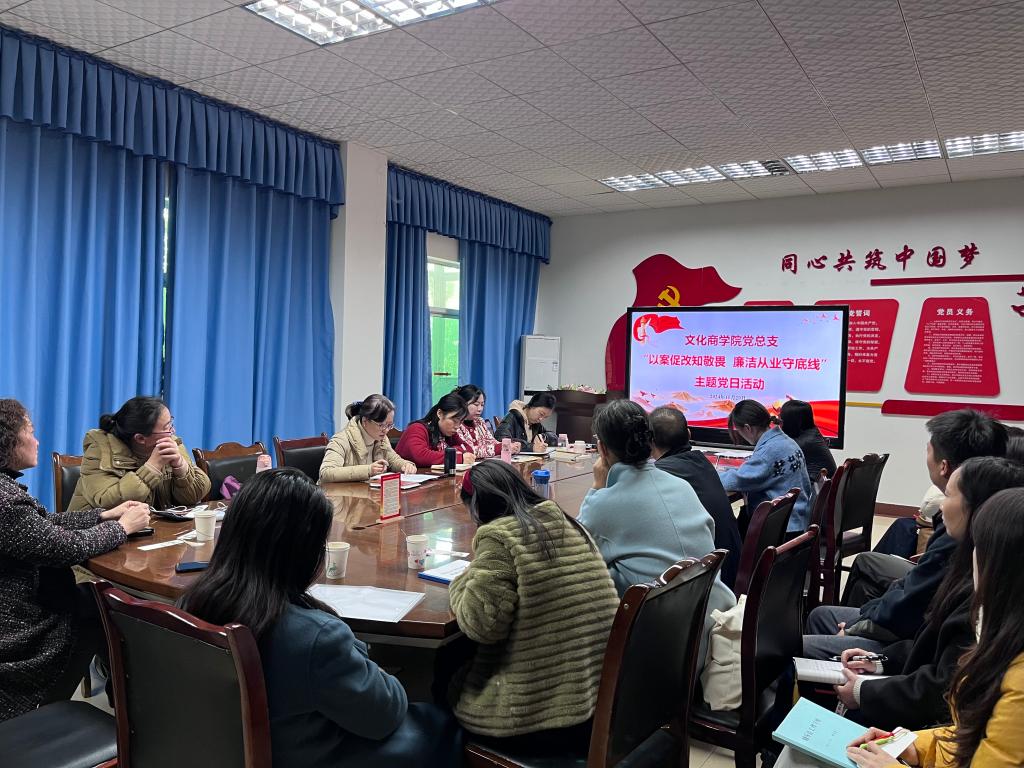 文化商学院两支部联合开展“以案促改知敬畏 廉洁从业守底线”主题党日活动