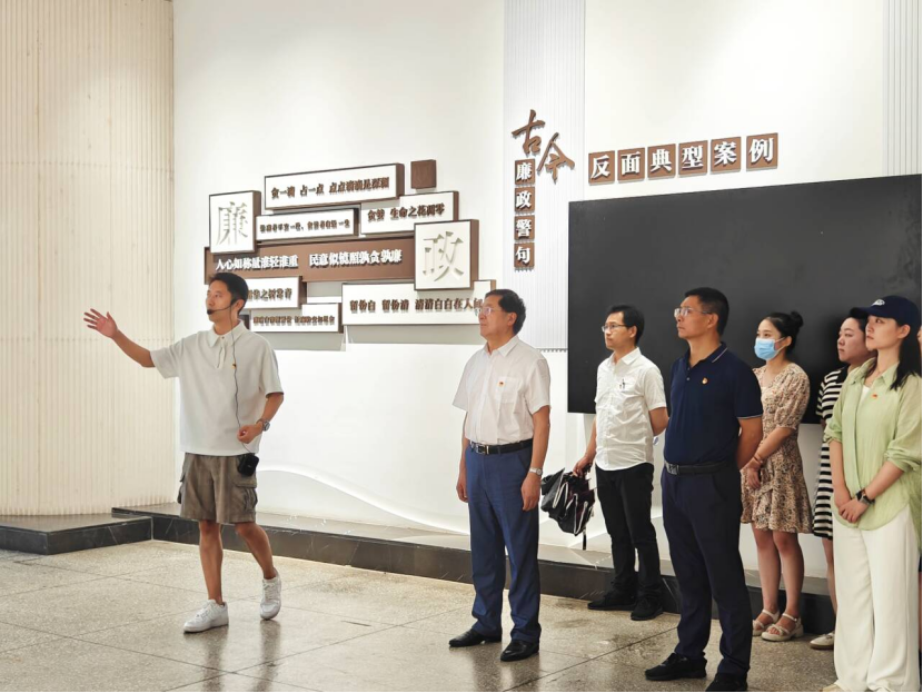 6月18日,正值炎炎夏日,文博学院党总支书记唐天卿、副书记刘林带领全院教师党员,前往我校特色文化阵地——“清风长廊”进行参观学习。文博学院学生党支部书记刘佩凡担任讲解员,为党员教师们详细讲解廉洁文化的重要性。